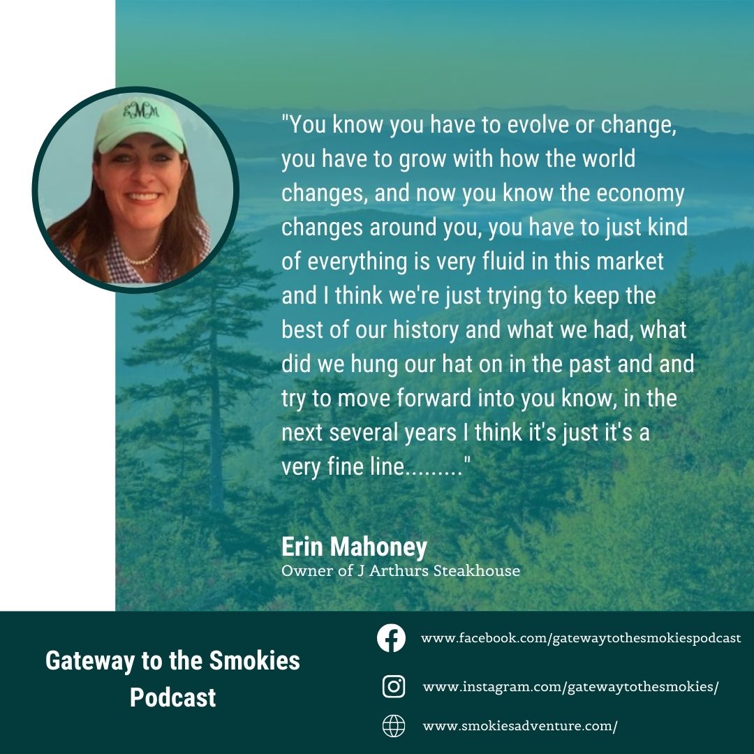 We are joined by our special guest Erin Mahoney, she is the fourth generation of the Mahoney Clan to own and operate one of the family restaurants. She descends from a long line of Hospitality Industry Entrepreneurs and currently Owns and Manages J Arthurs Steakhouse – a Maggie Valley landmark for more than 32 years. In addition to running a successful business, Erin is a longtime advocate for positive growth in Maggie Valley.