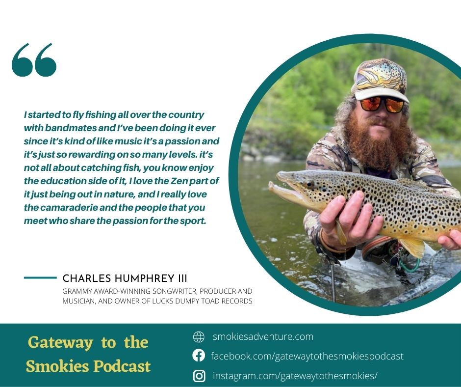 We’re joined by our special guest, Charles Humphrey III, a Grammy Award-winning songwriter, producer and musician, and owner of Lucks Dumpy Toad Records. Currently leading his own group –the superb chart-topping, Songs from the Road Band. He is the founder of Beast Coast Anglers, He is an expert fly-fishing guide and endurance runner and resides in Asheville.