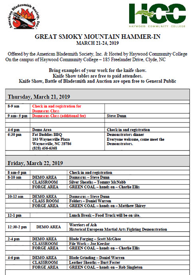 | $25 – $752019 Spring Great Smoky Mountain Hammer-In. Offered by the American Bladesmith Society