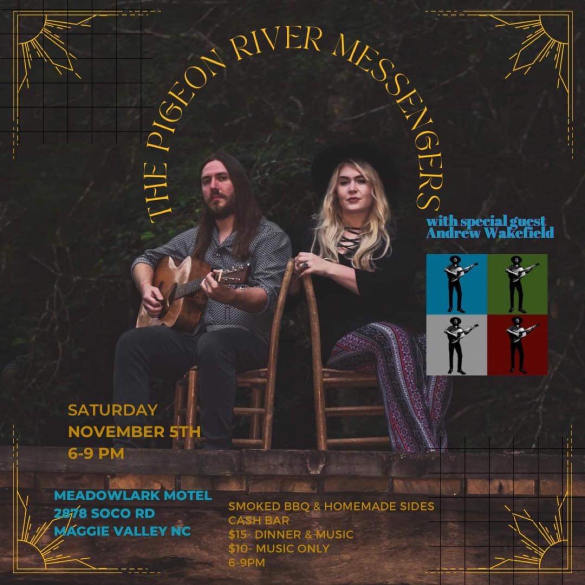 Meadowlark Motel 2878 Soco Road, Maggie Valley, United StatesThe Pigeon River Messengers are a duo based in the Appalachian Mountains of North Carolina. Consisting of Couple Zach & Lori who met over their common love for Gillian Welch & Dave Rawlings and folk music as a whole. Zach who is originally from Knoxville and later moved to Nashville, is heavily influenced by a