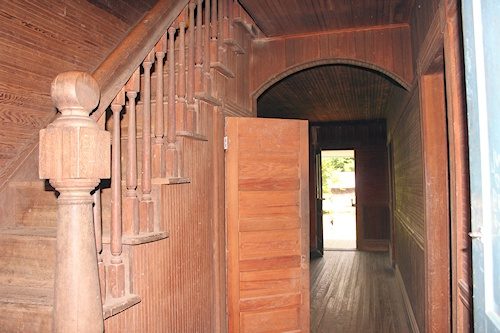 There was a beautiful staircase with fine woodworking that headed to the second floor. Downstairs was the remains of what was once a lovely fireplace. There were several large rooms downstairs.
