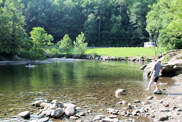 To be safe, only wade in very shallow pools with little if any current and no large rocks. Large rocks are extremely slippery. The Townsend Wye (pictured above) is a popular place to wade into a stream. However, you must watch the weather and be aware of flash flooding risks. Rivers and streams may rise quickly without notice, even if it’s not raining where you are.